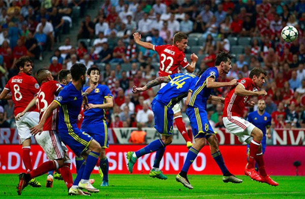 比赛来到第60分钟,贝尔纳特望了一眼高人林立的禁区,左路45度直接起球至对方门前。此时,一个熟悉的身影突然后排插上高高跃起,面对来球从容甩头,让罗斯托夫队门将扎纳耶夫只能目送着皮球飞入己方球门。是的,这就是拜仁小将基米希一周来三场比赛打入的第四粒进球,而此前他刚刚相继完成了国家队、德甲和欧冠的“处子球”。