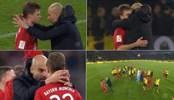这一幕或许早已牢刻在球迷的印象中:拜仁多特一战终场哨响后,就在两队球员于中圈互相握手致意时,瓜迪奥拉急不可耐地冲进场内,将基米希揽至胸前深情地讲解和训导……