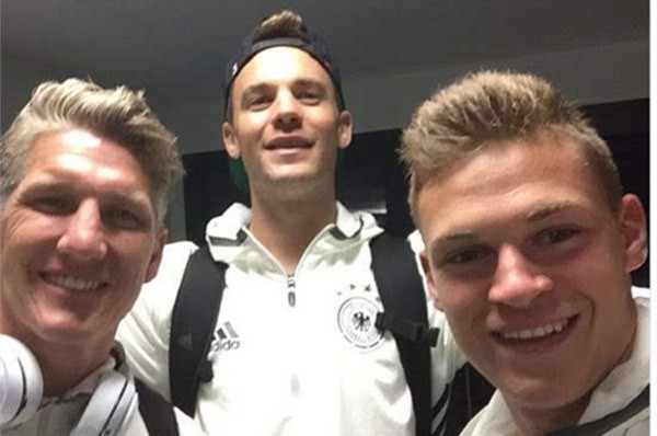 (图)基米希入选国家队后与小猪、诺伊尔合影