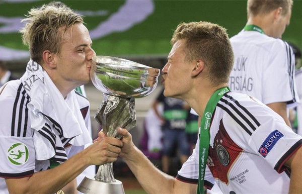 看到基米希如此的特点,你会优先想到谁呢?是不是德国以及拜仁曾经的攻防核心施魏因斯泰格?是的,出道伊始基米希便把小猪视为榜样,在训练与比赛中更是将其作为效仿对象,这样的表现让他很快便进入了德国青年队主教练赫鲁贝施的视野。